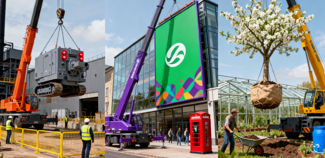 设备安装: 工厂机器设备搬运、定位,空调机组、变压器吊装等。